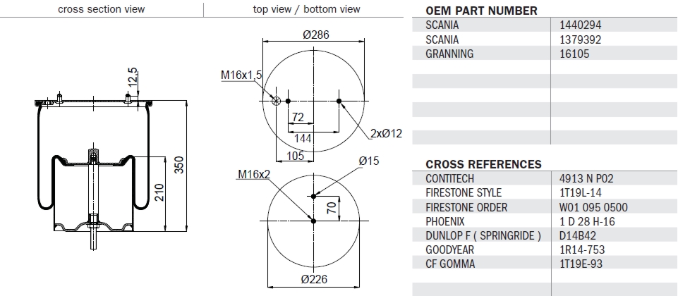 měch kompletní zad. Scania S4/R kov. zvon W01M589881, SA520045C, MLF7081, IT 0301S 10052, FT554913-K, ABM77133K55, 931641, 4913NP02, 34913, 260.159, 1D28H-16, 1731113, 1543691, 1440294, 1439284, 1379392, 1.25855, 1.25670, 1.25058