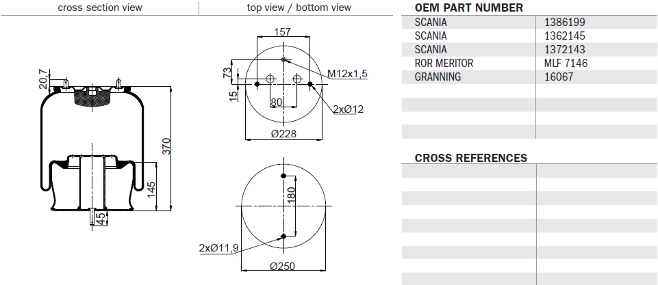 Měch pérování kompletní, přední Scania 4 série, R MLF7146, 76199C, 1DF23C-1, 14190002204, 1386199, 1362145, 1.25055, 084.298-41A