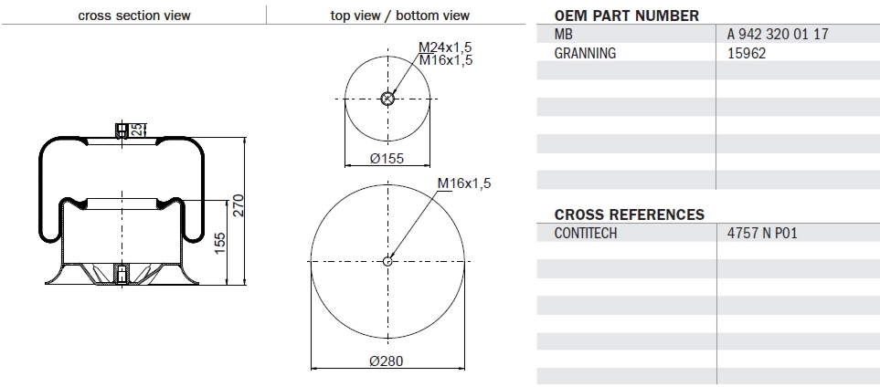 měch kompletní MB Actros, centr. vstup 084.111-71A, 35692, 4.80374, 4757NP21, 9423200117, 9423204321, 9423270001, 9423270101, A9423270001, CG206785, MLF7164, RML95868-1, SA520177C