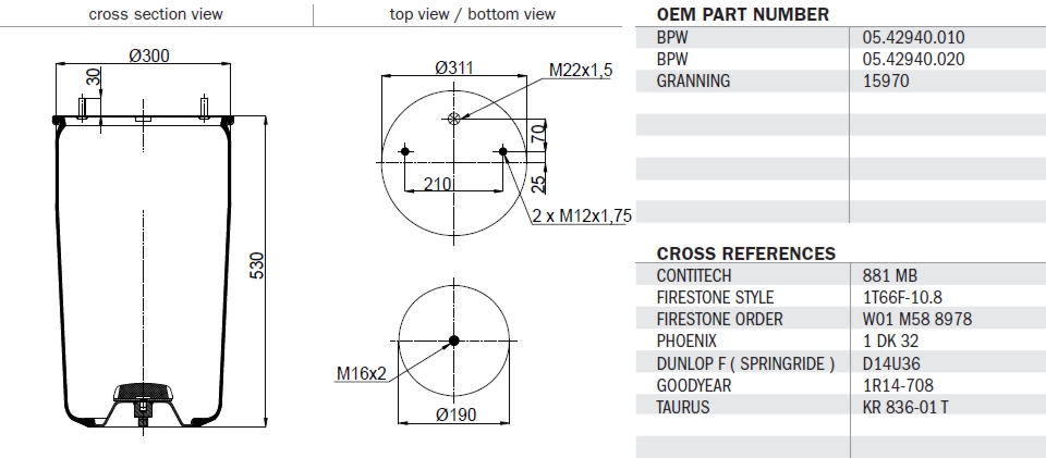 0542940020, 0542940010, 0542941310, 0542941361, 084.059-71A, 1DK32, 1R14-708, 20881, 6165305112, 881MB0, 9518147080, 99881MB, ABM95036A, FT55881, W01M588966, MLF7066, W01M588978