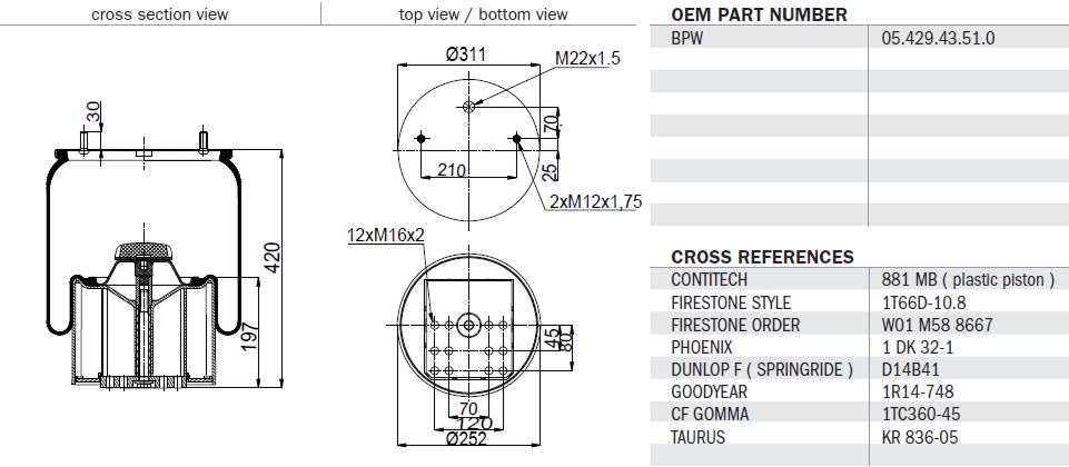 0542943510, 084.059-74A, 10.16002, 34881-C, 405.791-00A, FT55881-KP, SA520087CP