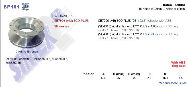 kotouč brzdový BPW SB 7000 ,430x290x160x335 FCR172A, BP101, 308835017, 308835010, 0308835017, 0308835010