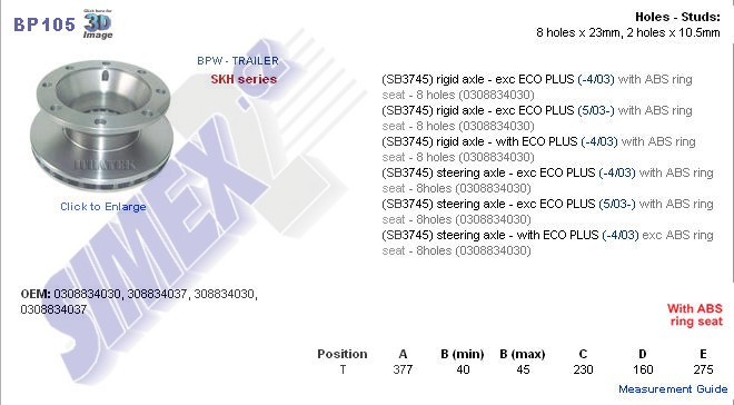 BPW SKH serie SB3745 (8 děr) 0308834030, 221067, 308834037, 308834030, 800-330 234 PEA, 960360, BP105, FCR206A