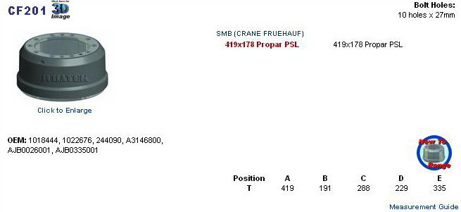 CRANE FRUEHAUF: 419x178 Propar PSL IT 1502F 20848, FR1068, AJB0335001, A3146800, AJB0026001, 244090, 166.069-00, 1022676, 1018444