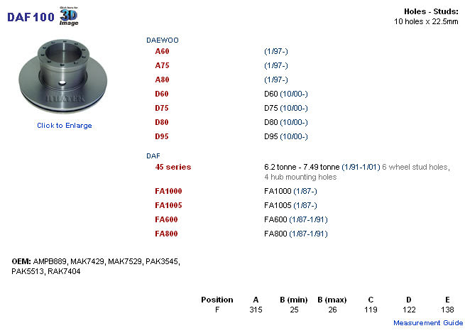 DAF 45 serie 6.2t-7.49t 91-01 PAK5513, MAK7529, PAK3545, MAK7429, IT 1601D 01006, D171, AMPB889, RAK7404
