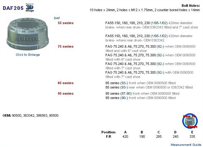 DAF: 55, 75, 85, 95, front & rear drum 90 500 363, DA531, IT 1501D 20521, 386563, 106.086-00