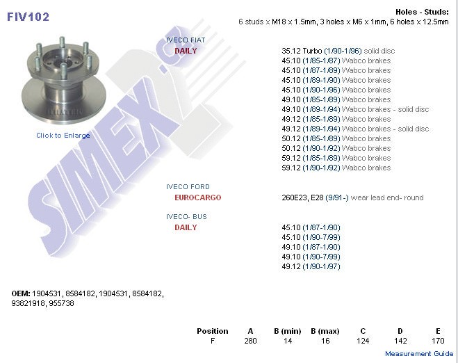 kotouč brzdový IVECO DAILY ,280x124x142x170 1904531, 955738, FIV102, 93821918, 8584182