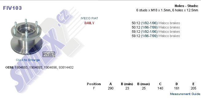 kotouč brzdový IVECO DAILY 59.12 ,290x140x161x205 FIV103, 93814402, 1904693