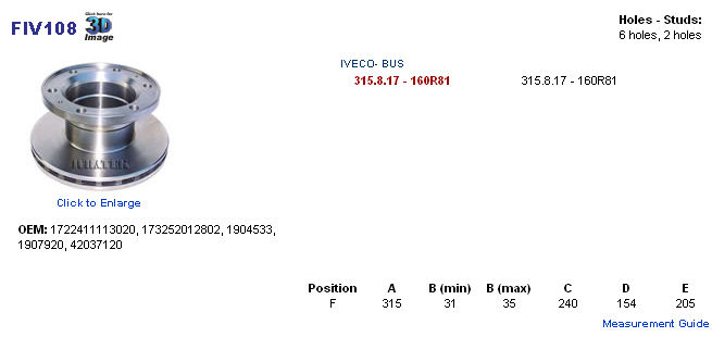 Brzd kotouč IVE PSV 315.8.17 - 160R81 173252012802, 1904533, 1907920, 42037120, X172241111302