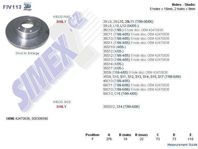 Brzd kotouč IVE Daily 29 L9 - 50C13 přední 99- 500306590, 42470836, FIV113