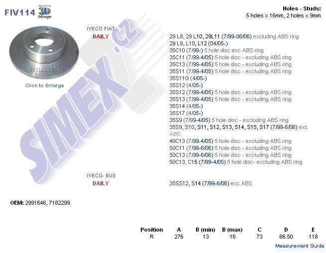 Brzd kotouč Iveco Daily 29 L9 - 50C13 zadní 99- FIV114, 7182299, 2991646