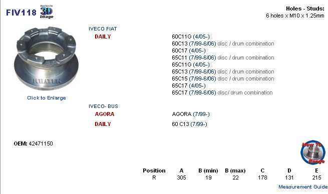 Brzd kotouč IVE DAILY 65C11,C13,C15 zadní 2000- 42471150, 08.7772.10