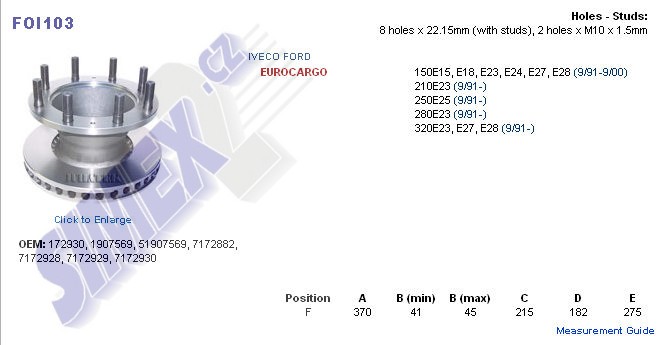 IVECO Eurocargo 150E15-320E27 Tector (91-) - ko FOI103, 7172928, 7172929, 51907569, 172930, 1907569