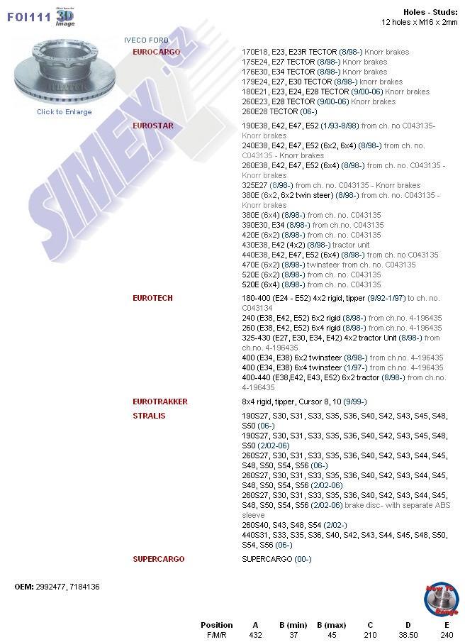 kotouč brzdový IVECO EUROCARGO. STRALIS ,432x210x139x240 FOI111, 7184136, 2992477