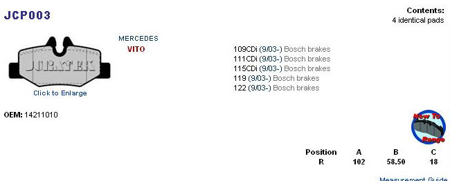 Mercedes Vito Van, Viano Van 9/03- zad. MDB2679, IT 0602S 24008, FDB1494, 24008