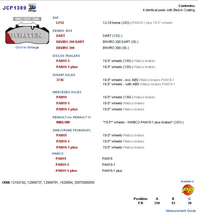DAF LF55, DENNIS, RENAULT Midlum, SMB FCV1406, CVP089, 29168, 29159, 29126, 1628064