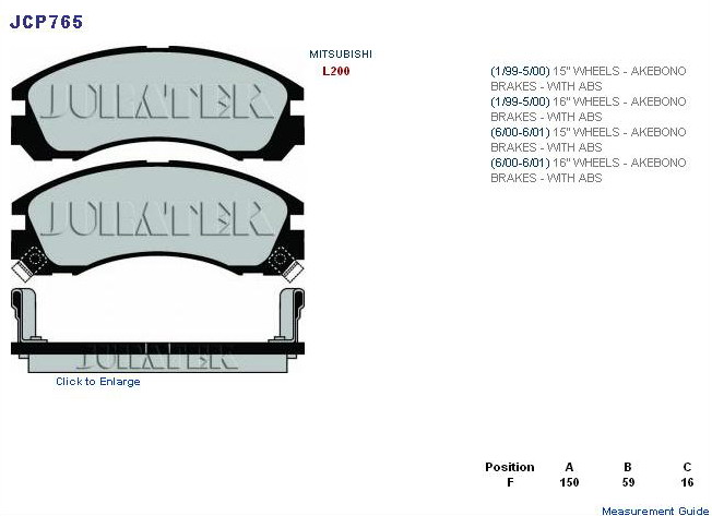 Mitsubishi L200, inc ABS, 00 (Akebono) 21370, 21768, 21769