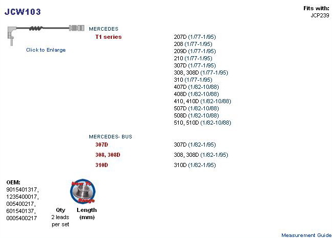 čidla destiček MB T1 1235400017, 1265402017, 5400217, 6015400137, 9015401317, EFA003, WK03, WK143, WK287