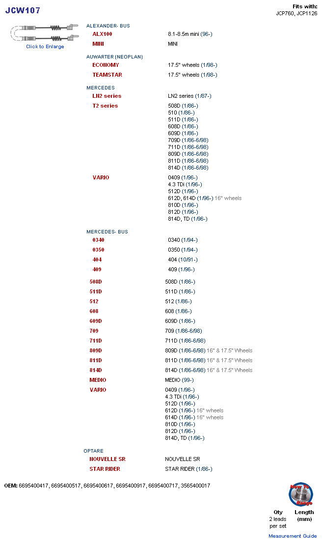 čidla destiček BUS AUWARTER/Economy/Teamstar/MB LN2/T2/VARIO/ATEGO WK39, WK38, WK358, WK256, WIK500, IT 0603F 00001, EFA007, 6695400917, 6695400717, 6695400617, 6695400517, 6695400417, 3565400017