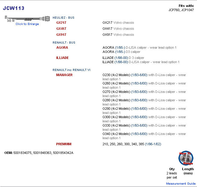 čidla destiček RVI AE/PRE/VOL BUS B7,B10 pro 29090 5001834075, 5001848363, EFA013, WIK514, WK367, WK514