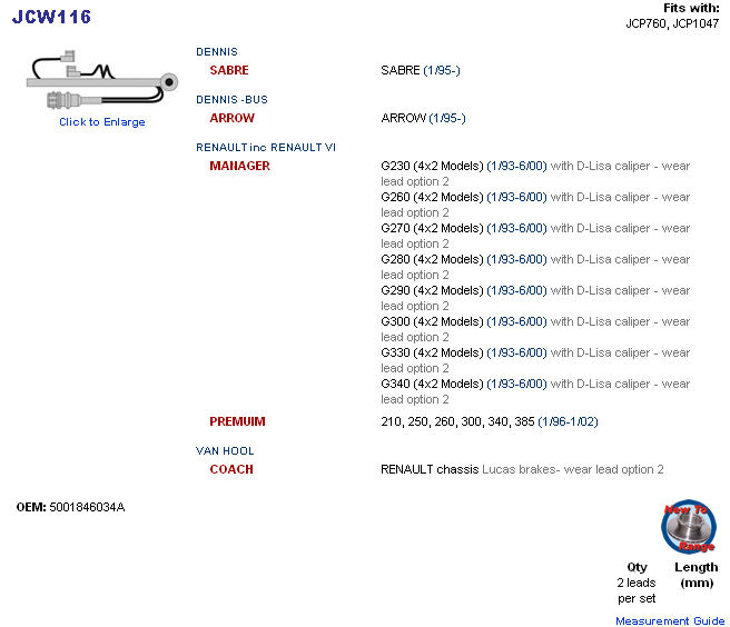 čidla destiček DENNIS/RVI AE/PRE/MANAGER EFA016, 5001846034A