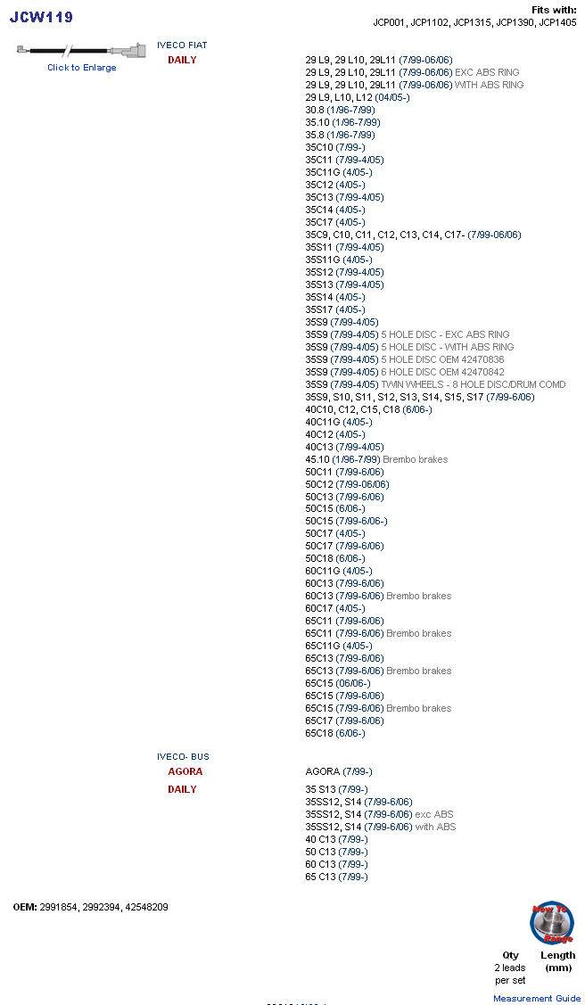 čidla destiček FIAT/IVE Daily WK359, WIK512, EFA022, 42548209, 42548195, 2992394, 2991854