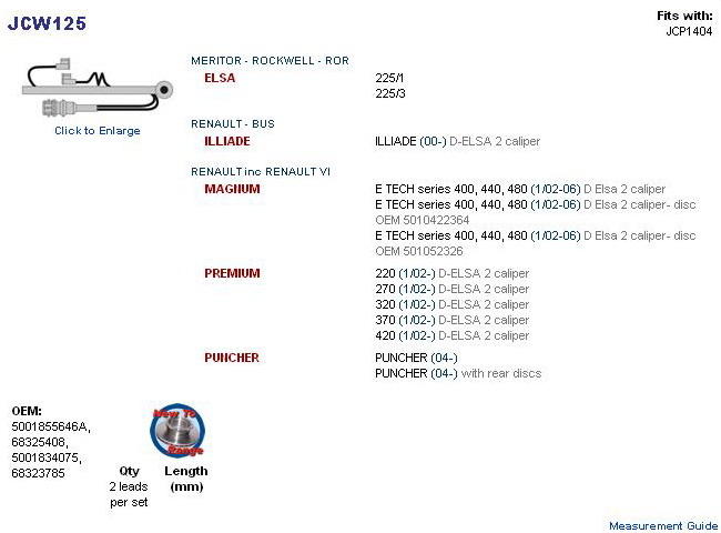 čidla destiček RVI PRE/FHD pro 29218 5001834075, 5001855646A, 68323785, 68325408, 85110419, 882345, EFA028, IT 0603F 00015, WK409, WK537
