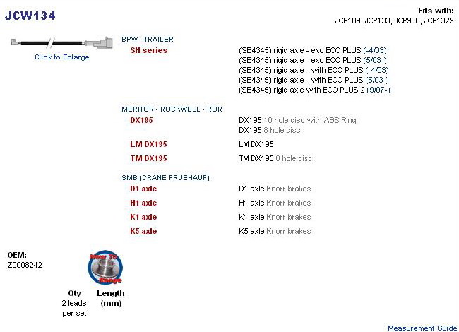 čidla destiček BPW/MERITOR LM/TM/SMB/SAF IT 0603F 00039, WK467, Z0008242