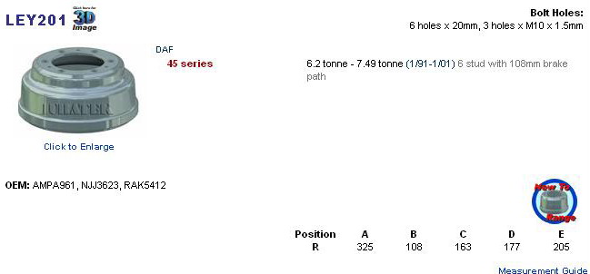 LEYLAND: 45 SERIES rear drum RAK5412, NJJ3623, LE1931, IT 1501D 27177, AMPA961