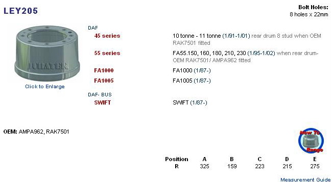 LEYLAND: 45 SERIES rear drum RAK7501, DA0607, AMPA962