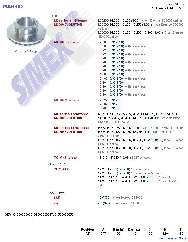 81508030020, 81508030027, 81508030057, II39290F, MAN103, MAN638650, MBR5014, PT026.660-00