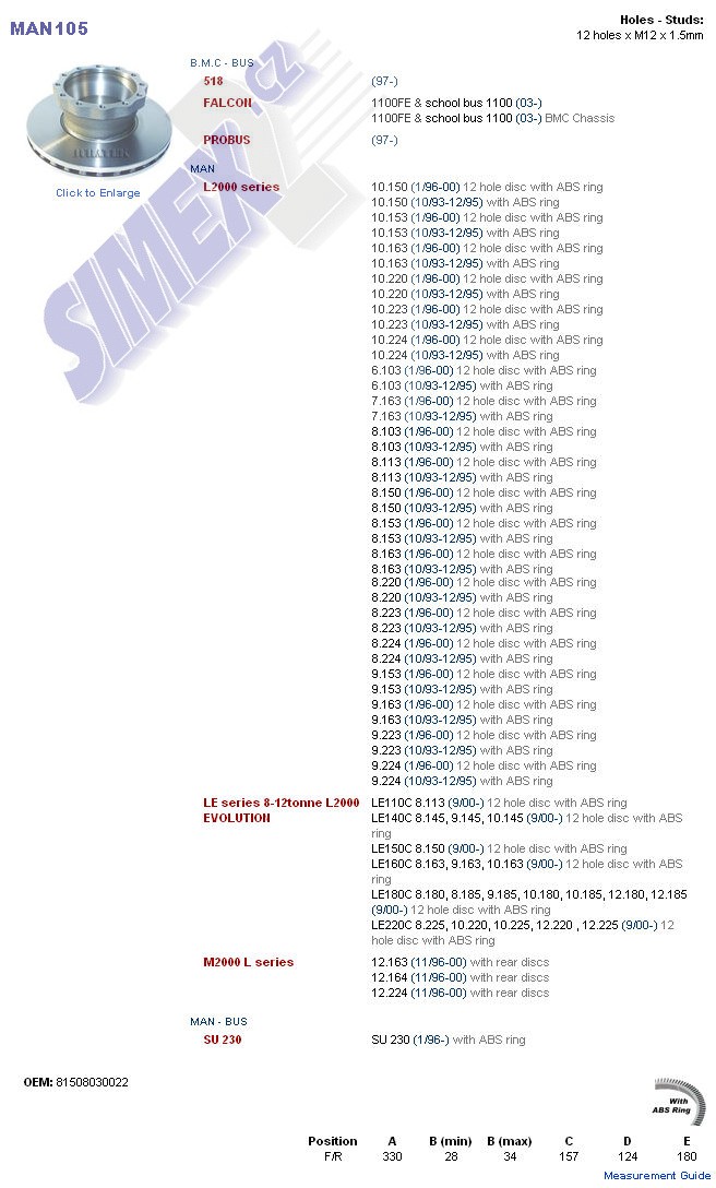 kotouč brzdový MAN L2000 zadní ,330x157x124x180 81508030022, 81508030061