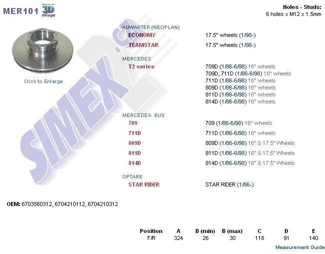 MER101, 6704210312, MBR1589, 6704210112, 6703560312