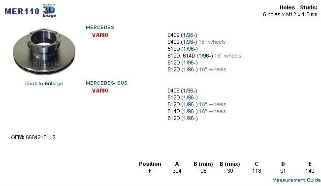 MERCEDES Vario 0409-812D 96- 6684210112, MBR5037