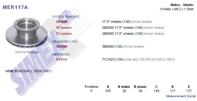 kotouč brzdový MERCEDES ATEGO zadní ,335x145x111x177 4575-430 213 ZEN, 9704230412, 9704230612, A9704230412, A9704230612, D261, FCR187A, MBR5070, MER117A, RH1057.20