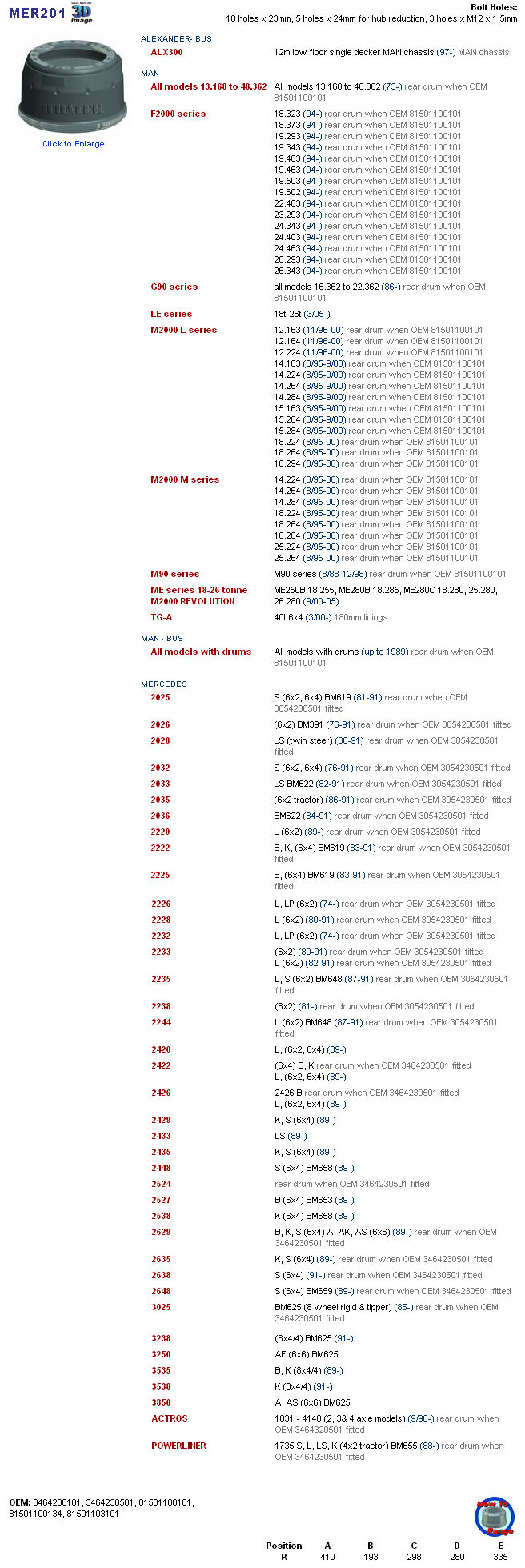 SM328, MN1616, IT 1501M 21496, 8150110310, 81501100134, 81501100101, 3464230501, 3464230101, 036.402-00