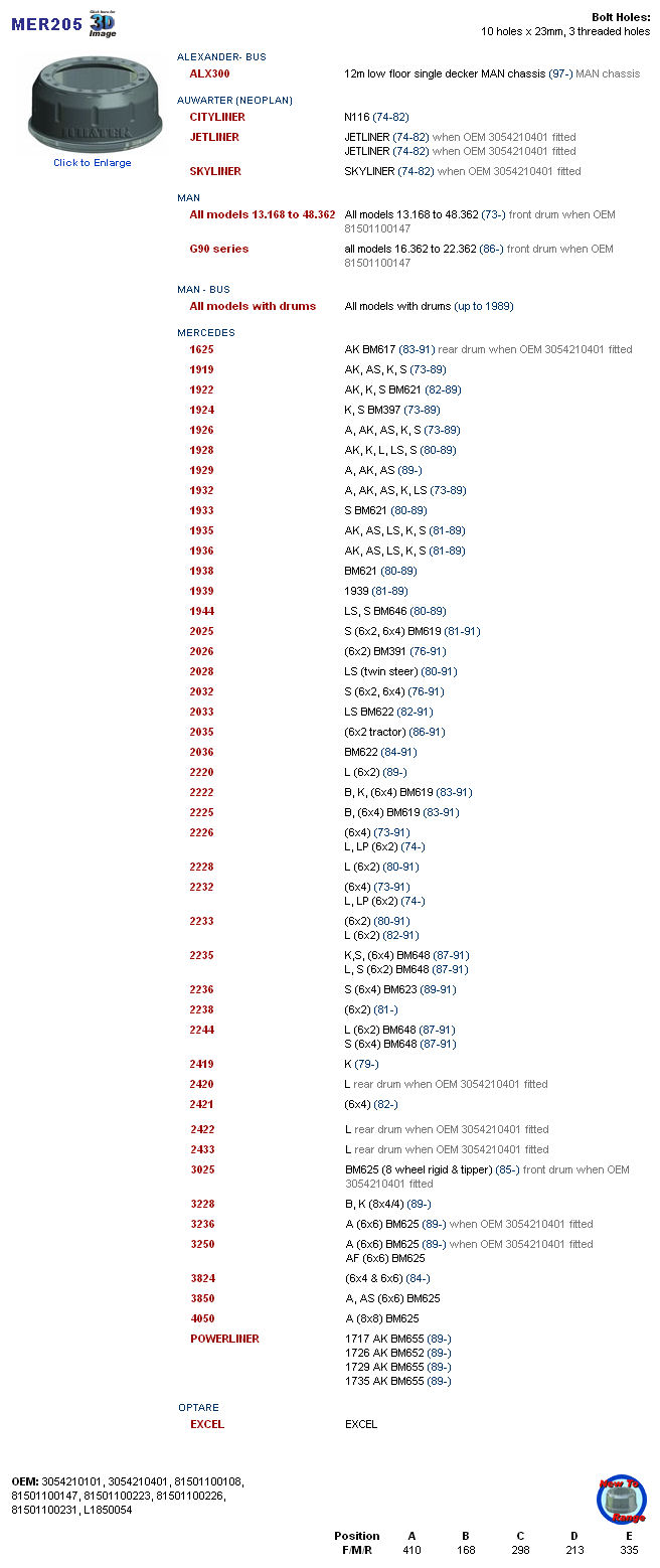 ME1757, 016.404-00, L1850054, IT 1501M 24507, 8150110023, 8150110022, 81501100147, 81501100108, 3054210401, 3054210101