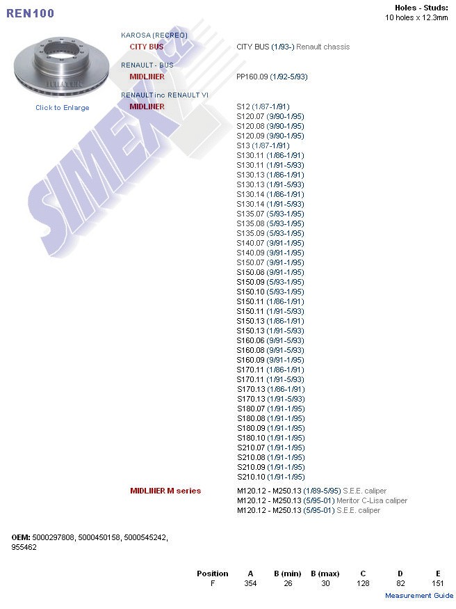 DENNIS Rapier, RENAULT Midliner 5000545242, 955462, MBR2693, 5000450158, 5000297808, REN100