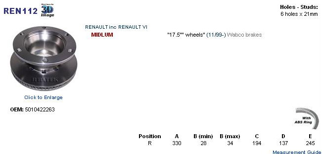RENAULT Midlum (O.E. 5010 422 263) 09.9493.60, 5010422263, IT 1601R 01103