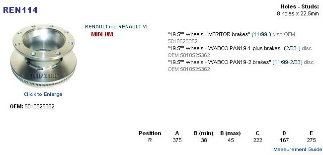 Kotouč brzd. RVI Midlum 5010525362, IT 1601R 01142