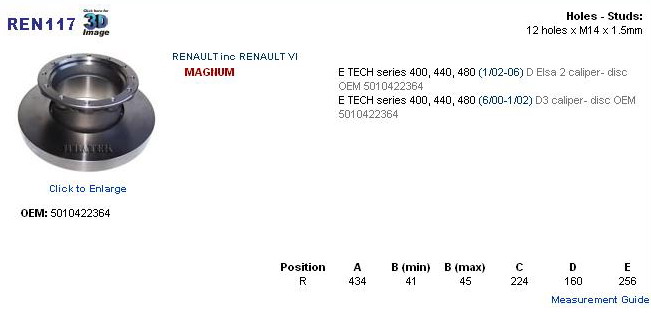 kotouč brzdový RENAULT MAGNUM. PREMIUM ,434x130x 97x165 18019, 215.053, 5010216437, 5010422363, 5010422593, 6.61005, 7482194787, REN116, RH1075.20