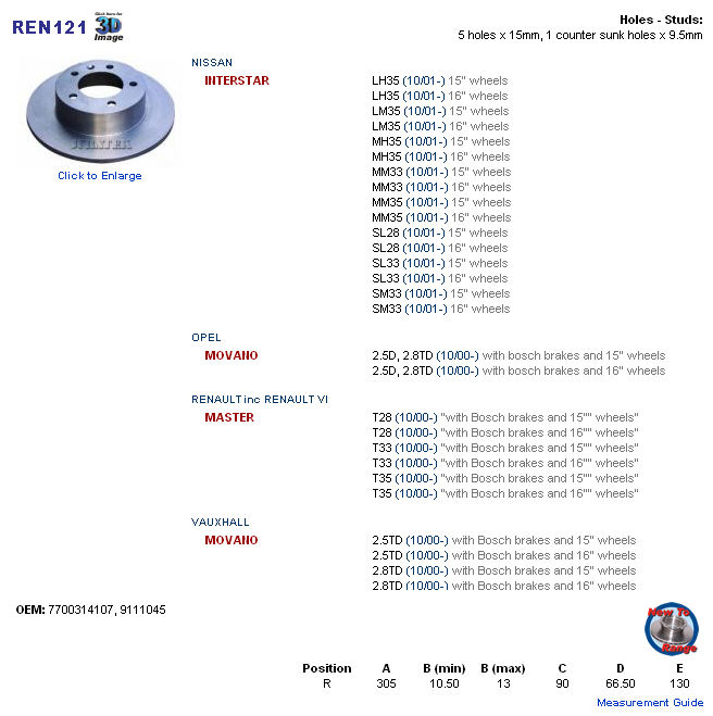 RENAULT MASTER zad. 9111045, 7700314107, IT 1604N 02030