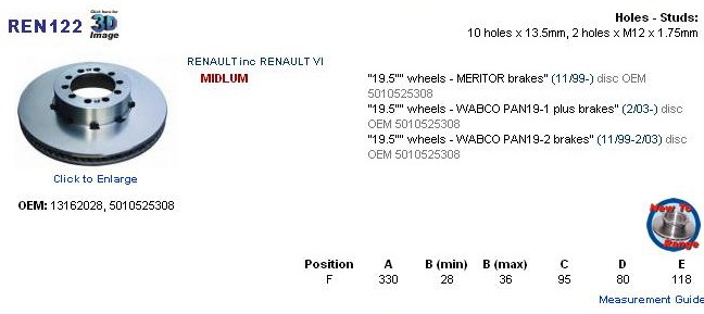 RENAULT MIDLUM 13162028, 5010525308, 09.9492.20