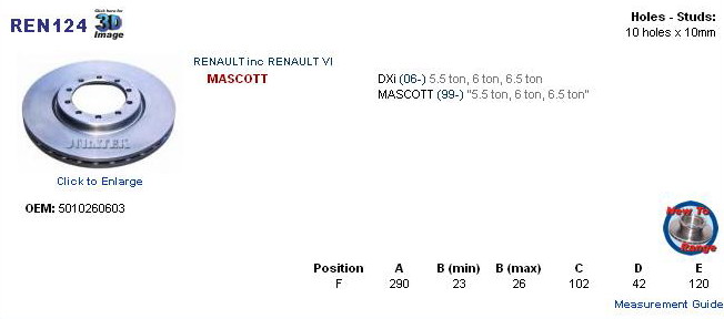 RENAULT MASCOTT 5.5, 6, 6.5 T 5010260603
