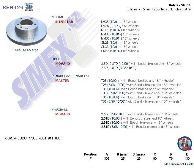 kotouč brzdový RENAULT MASTER T28 ,305x90x77x130 9111038, 7700314064, 4403038