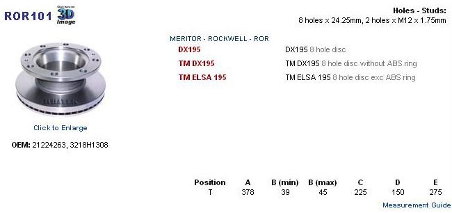 Meritor (ROR) DX195 (8 děr) 21224263, 3218H1308, IT 1602R 01081, PT266.001-00