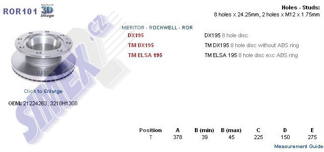 MERITOR (ROR) DX195 (8 děr) 21224263, 3218H1308, ROR101