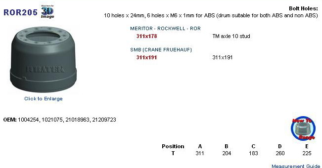 Brzd. buben ROR/SMB 310x190/10děr TM 1021075, 1004254, 21018963, 21209723, 256.564-00, IT 1502R 26059, R01206