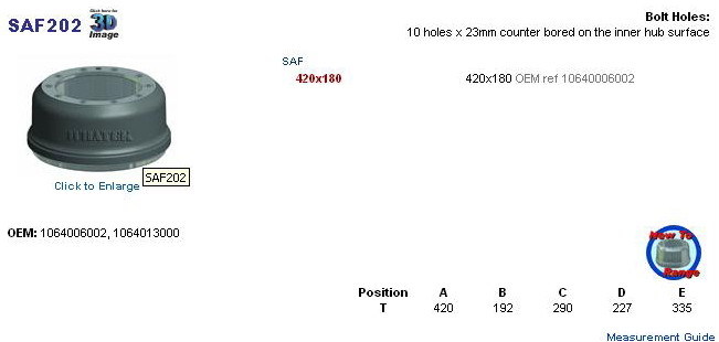 Brzdový buden SAF 420x180 RSM 1064006002, 1064013000, IT 1502S 23154, SAU0694, 066.416-00