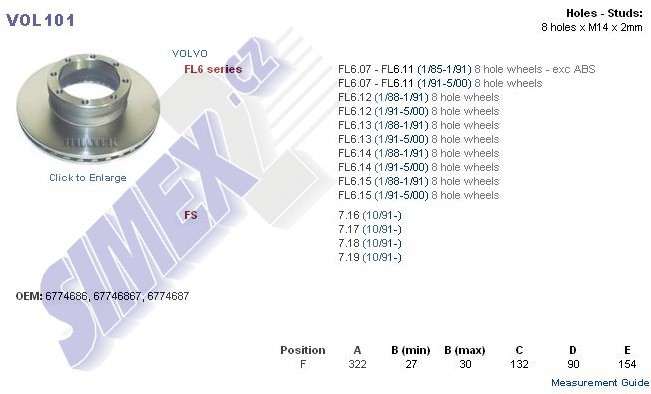 VOLVO FL, FLC serie (8 děr) VOL101, MBR5021, II39028F, 6774687, 67746867, 6774686
